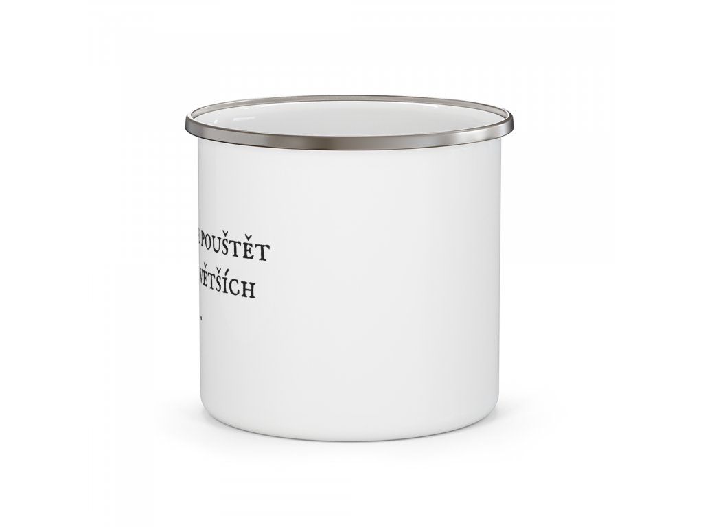 Bílý kovový hrnek - plecháček je určen k ručnímu mytí, ale vzhledem k vysoce kvalitní polymerní vrstvě jej můžete mýt i v myčce. I po několika umytích jsou barvy stále syté.