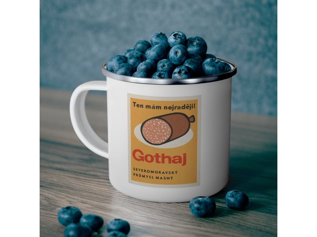 Bílý kovový hrnek - plecháček je určen k ručnímu mytí, ale vzhledem k vysoce kvalitní polymerní vrstvě jej můžete mýt i v myčce. I po několika umytích jsou barvy stále syté.