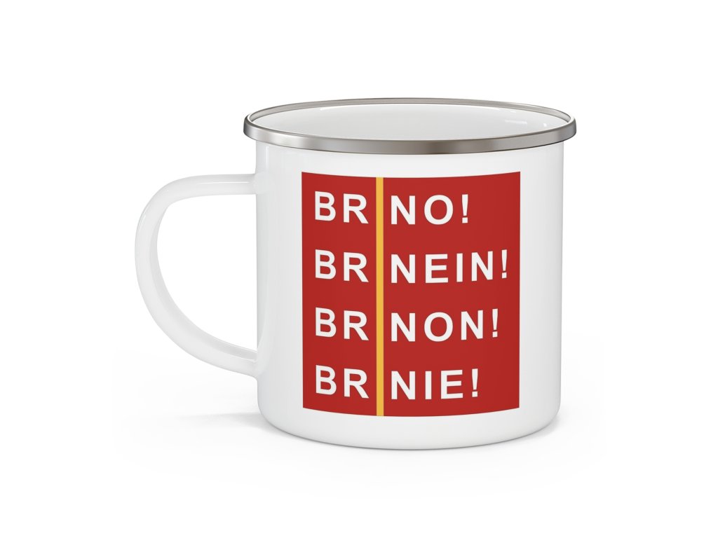 Bílý kovový hrnek - plecháček je určen k ručnímu mytí, ale vzhledem k vysoce kvalitní polymerní vrstvě jej můžete mýt i v myčce. I po několika umytích jsou barvy stále syté.