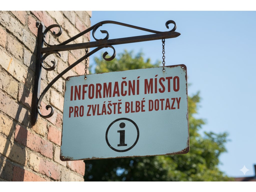 Plechová cedulka – Informační místo pro zvláště blbé dotazy