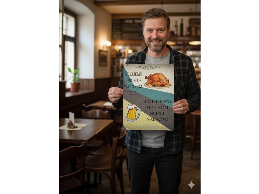 Plechová retro cedule - Nežijeme proto abychom jedli...