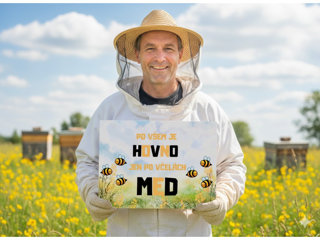 Plechová retro cedule - Po všem je hovno, jen po včelách med