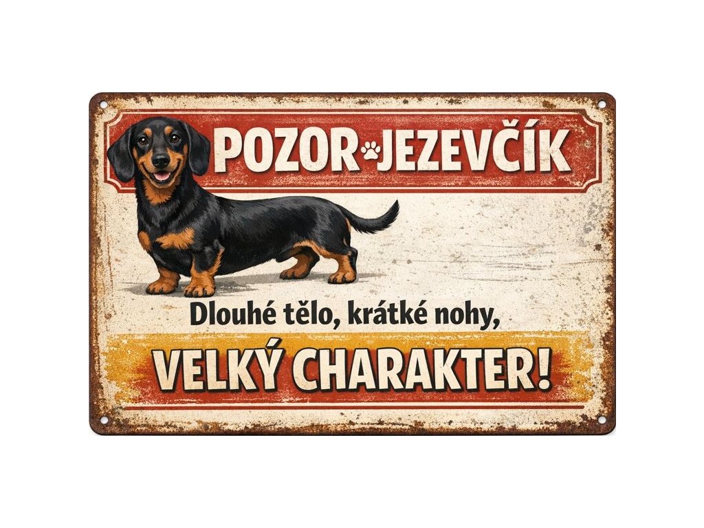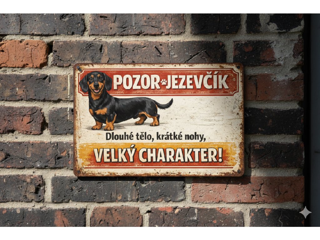 Plechová retro cedule - Pozor jezevčík