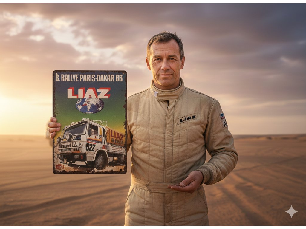 Plechová retro cedule - Rallye Paris - Dakar 1986 Liaz