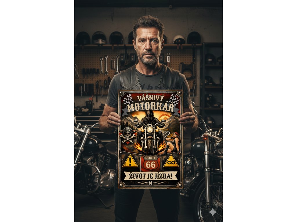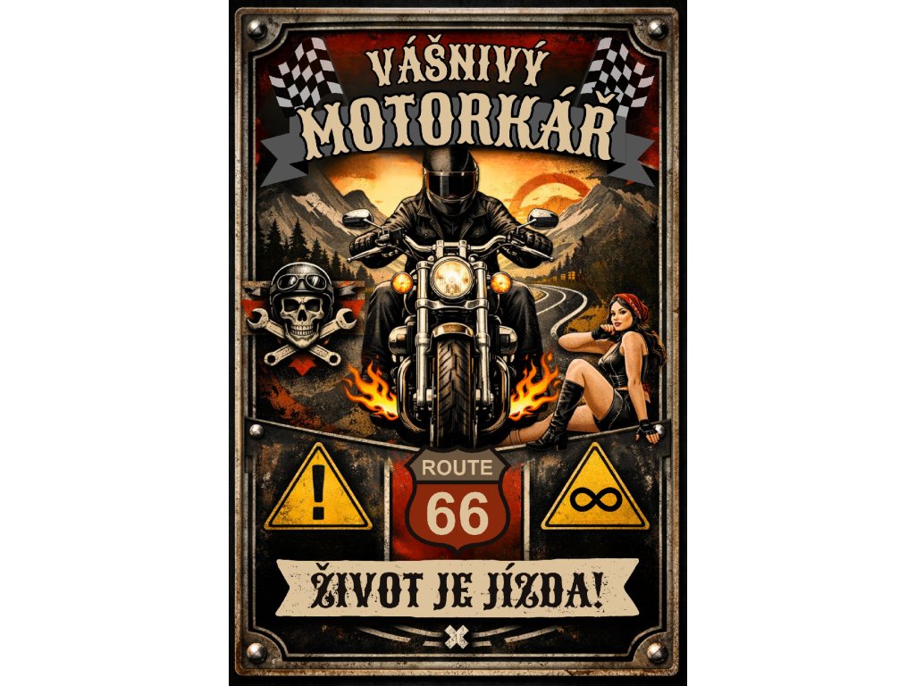 Plechová retro cedule - Vášnivý motorkář